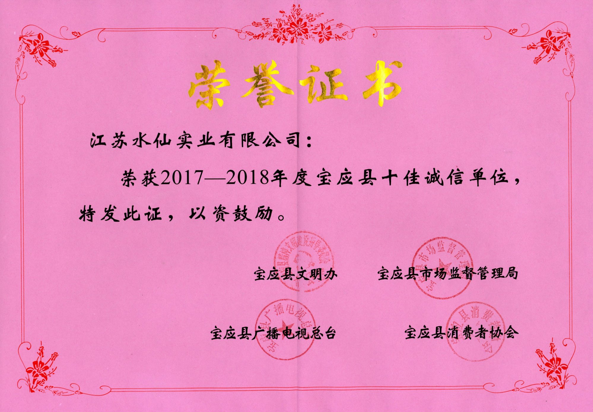 寶應(yīng)縣十佳誠信單位